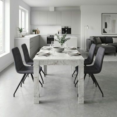 Σετ τραπεζαρία 5τμχ Darlen - Alma Megapap χρώμα λευκό εφέ μαρμάρου - γκρι 125x72x74εκ.