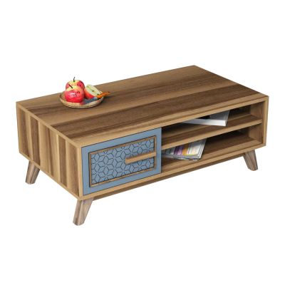 10. ΤΡΑΠΕΖΙ ΣΑΛΟΝΙΟΥ HM9502.02 ΜΕΛΑΜΙΝΗΣ ΜΕ ΝΤΟΥΛΑΠΑΚΙ ΚΑΡΥΔΙ & ΜΠΛΕ 105x60x38.2Υεκ.