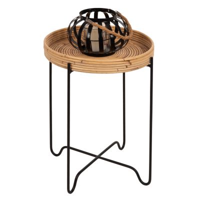 13. ΤΡΑΠΕΖΑΚΙ ΒΟΗΘΗΤΙΚΟ FLY HM7906 RATTAN ΦΥΣΙΚΟ ΧΡΩΜΑ-ΜΕΤΑΛΛΙΚΗ ΒΑΣΗ ΜΑΥΡΗ Φ40x53Yεκ.