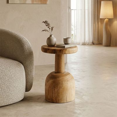 Βοηθητικό τραπέζι Jenby pakoworld μασίφ μάνγκο ξύλο σε φυσική απόχρωση Φ40x50εκ