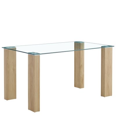 Τραπέζι Τραπεζαρίας ArteLibre ASHMOOR Φυσικό Γυαλί/Ξύλο 140x80x75cm