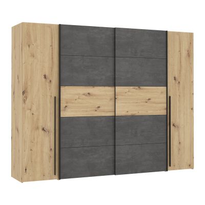 Ντουλάπα ρούχων Verzo pakoworld τετράφυλλη oak-ανθρακί μελαμίνης 270.5x61.5x210.5εκ