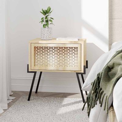 19. Κομοδίνο μελαμίνης Glynn Megapap χρώμα ανοιχτό καφέ 50,2x44,6x60εκ.