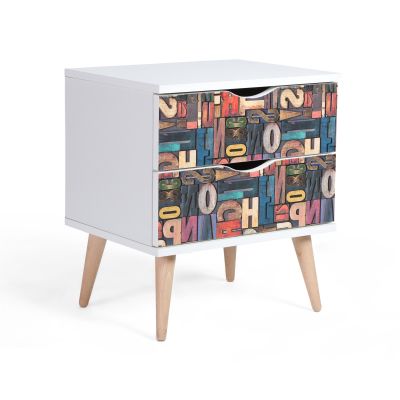 12. Κομοδίνο ''ADELE'' με 2 συρτάρια σε χρώμα λευκό με patchwork λεπτομέρειες 45x36x50εκ
