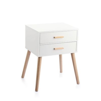 10. Κομοδίνο με δύο συρτάρια από MDF/ξύλο σε φυσικό/λευκό χρώμα 45x45x62
