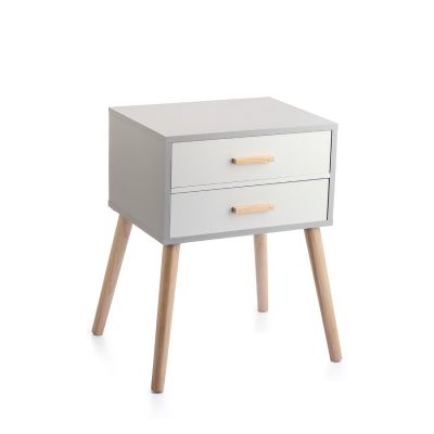 11. Κομοδίνο με δύο συρτάρια από MDF/ξύλο σε φυσικό/γκρι χρώμα 45x45x62