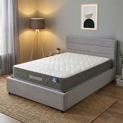 Κρεβάτι με στρώμα και αποθηκευτικό χώρο Norse-Dreamer pakoworld pu γκρι 160x200εκ