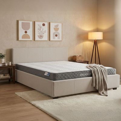 Κρεβάτι με στρώμα και αποθηκευτικό χώρο Roi-Dreamer pakoworld ύφασμα εκρού 160x200εκ
