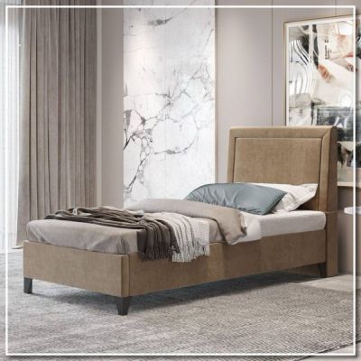 9. Κρεβάτι διπλό "NAPOLI" από ύφασμα σε χρώμα εκρού 160x200x120