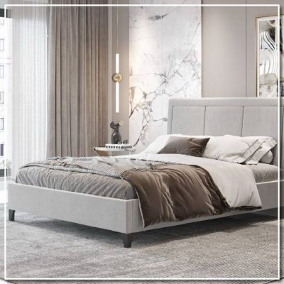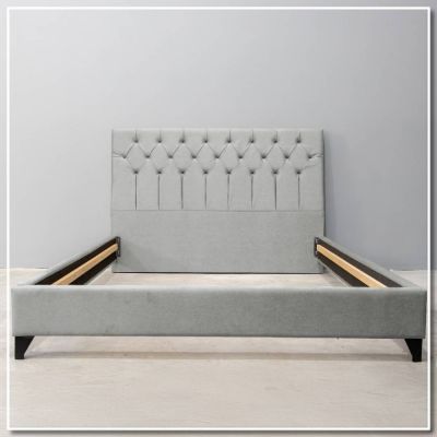 2. Κρεβάτι διπλό "NAPOLI" από ύφασμα σε χρώμα γκρι του πάγου 160x200x120