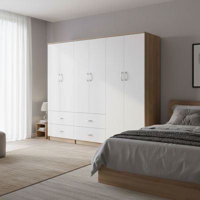 Ντουλάπα εξάφυλλη Lego pakoworld sonoma-λευκή 240x42x180εκ