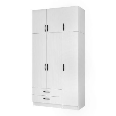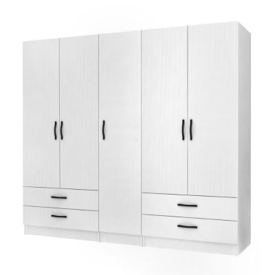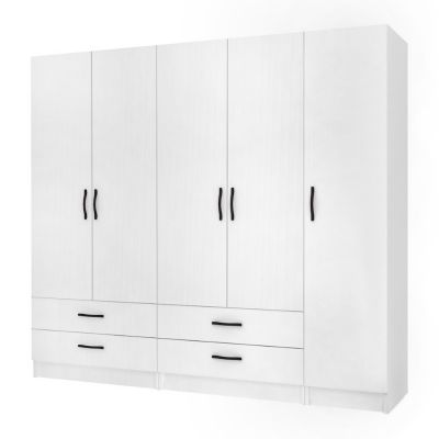 Ντουλάπα ρούχων Ricardo Megapap πεντάφυλλη με συρτάρια χρώμα λευκό 200x51,8x181εκ.