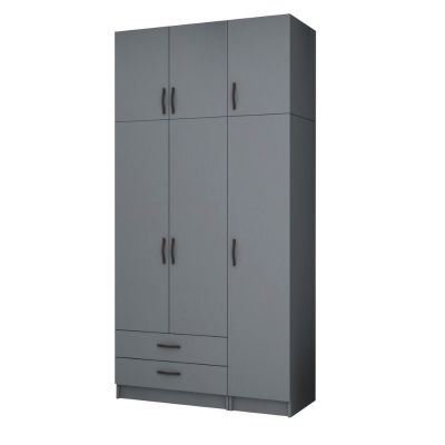 Ντουλάπα ρούχων Ricardo Megapap τρίφυλλη με πατάρι και συρτάρια χρώμα ανθρακί 120x51,8x240εκ.
