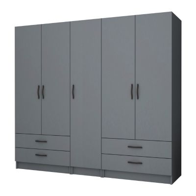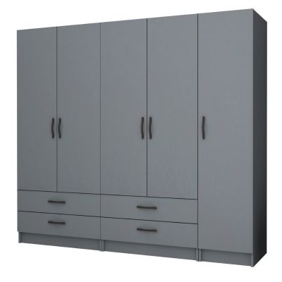 Ντουλάπα ρούχων Ricardo Megapap πεντάφυλλη με συρτάρια χρώμα ανθρακί 200x51,8x181εκ.