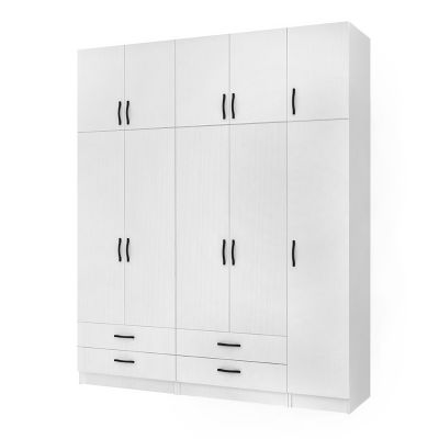 Ντουλάπα ρούχων Ricardo Megapap πεντάφυλλη με πατάρι και συρτάρια χρώμα λευκό 200x51,8x240εκ.