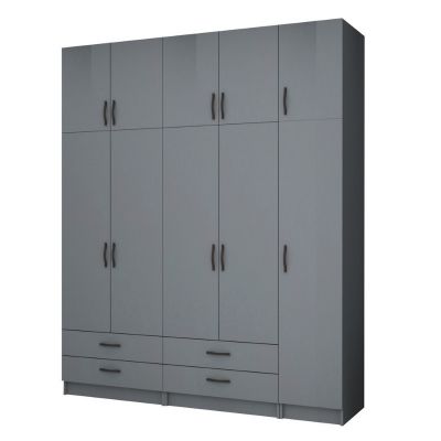 Ντουλάπα ρούχων Ricardo Megapap πεντάφυλλη με πατάρι και συρτάρια χρώμα ανθρακί 200x51,8x240εκ.