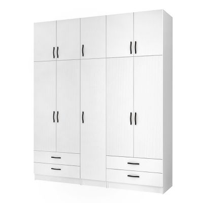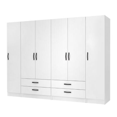 Ντουλάπα ρούχων Ricardo Megapap εξάφυλλη με συρτάρια χρώμα λευκό 240x51,8x181εκ.