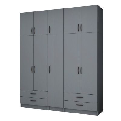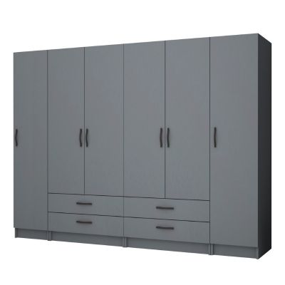 Ντουλάπα ρούχων Ricardo Megapap εξάφυλλη με συρτάρια χρώμα ανθρακί 240x51,8x181εκ.