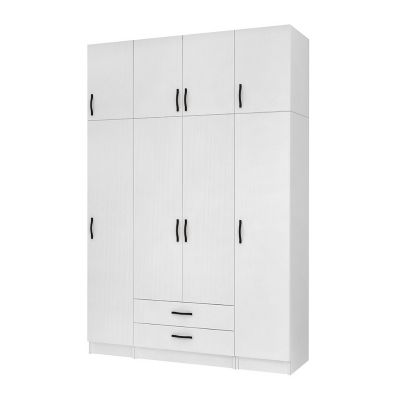 Ντουλάπα ρούχων Ricardo Megapap τετράφυλλη με πατάρι και συρτάρια χρώμα λευκό 160x51,8x240εκ.