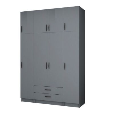 Ντουλάπα ρούχων Ricardo Megapap τετράφυλλη με πατάρι και συρτάρια χρώμα ανθρακί 160x51,8x240εκ.