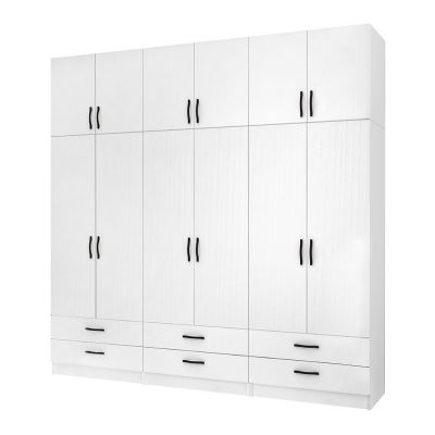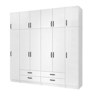 Ντουλάπα ρούχων Ricardo Megapap εξάφυλλη με πατάρι και συρτάρια χρώμα λευκό 240x51,8x240εκ.