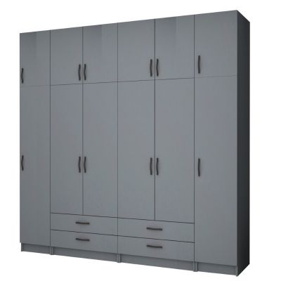 Ντουλάπα ρούχων Ricardo Megapap εξάφυλλη με πατάρι και συρτάρια χρώμα ανθρακί 240x51,8x240εκ.