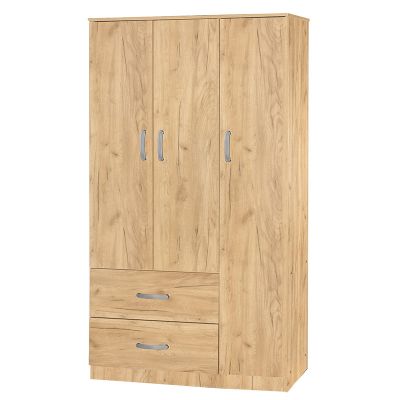 12. Ντουλάπα ρούχων τρίφυλλη Zelia pakoworld με 2 συρτάρια χρώμα oak 90x42x180εκ