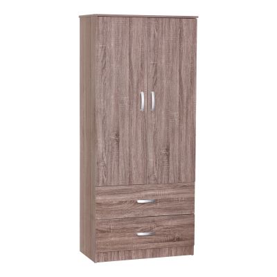 9. Ντουλάπα ρούχων δίφυλλη Zelia pakoworld με 2 συρτάρια χρώμα καρυδί 79x42x180εκ