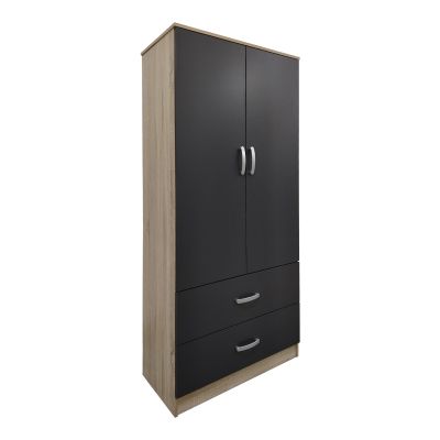 Ντουλάπα δίφυλλη με 2 συρτάρια Lego pakoworld σε sonoma-ανθρακί απόχρωση 80x42x180εκ