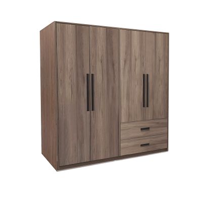 22. Ντουλάπα ρούχων Edritte pakoworld τετράφυλλη με συρτάρια ανοιχτό καρυδί 160x52x195εκ