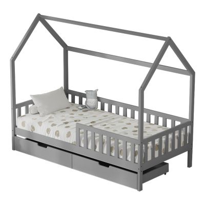13. ΚΡΕΒΑΤΙ ΚΟΥΚΕΤΑ ΠΑΙΔΙΚΟ LANTAI HM682.05 ΞΥΛΟ ΠΕΥΚΟΥ ΣΕ ΓΚΡΙ- ΣΤΡΩΜΑΤΑ 190x90εκ
