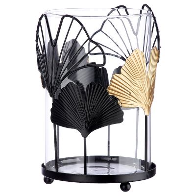 Φανάρι ArteLibre Με Διακόσμηση Φύλλα Μαύρο/Διάφανο Μέταλλο/Γυαλί 19cm