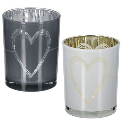 Φανάρι κυλινδρικό μοτίβο καρδιάς Γυάλινα σκεύη Γκρι Λευκό 2 Ποικιλία D10X13Cm D10X13Cm