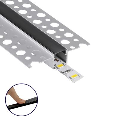20. GloboStar® PLASTERBOARD-PROFILE 70820-1M Προφίλ Αλουμινίου - Βάση & Ψύκτρα Ταινίας LED με Μαύρο Φιμέ Κάλυμμα - Χωνευτή Χρήση σε Γυψοσανίδα - Trimless - Πατητό Κάλυμμα - Ασημί - 1 Μέτρο - Μ100 x Π6.7 x Υ1.4cm
