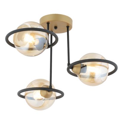 Φωτιστικό Κρεμαστό ArteLibre CAELUM Τρίφωτο Μαύρο/Χρυσό Μέταλλο/Γυαλί 50x38cm
