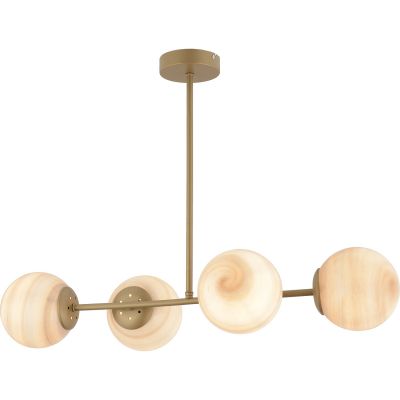 Φωτιστικό Κρεμαστό ArteLibre CHAMAELEON Τετράφωτο Χρυσό/Μελί Μέταλλο/Γυαλί 74x56cm
