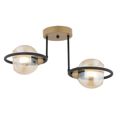 Φωτιστικό Κρεμαστό ArteLibre CORVUS Δίφωτο Μαύρο/Χρυσό Μέταλλο/Γυαλί 50x35cm
