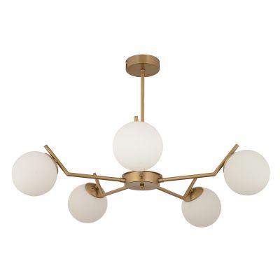 Φωτιστικό Κρεμαστό ArteLibre CRATER Πεντάφωτο Χρυσό/Λευκό Μέταλλο/Γυαλί 80x41cm