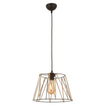 1. Φωτιστικό οροφής μονόφωτο PWL-1160 pakoworld E27 μαύρο-σχοινί 31x23.5εκ
