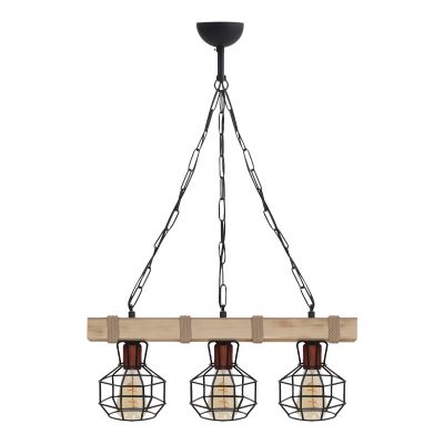 Φωτιστικό οροφής Lumenia Megapap E27 ξύλινο - μεταλλικό τρίφωτο χρώμα φυσικό - μαύρο 50x14x80εκ.