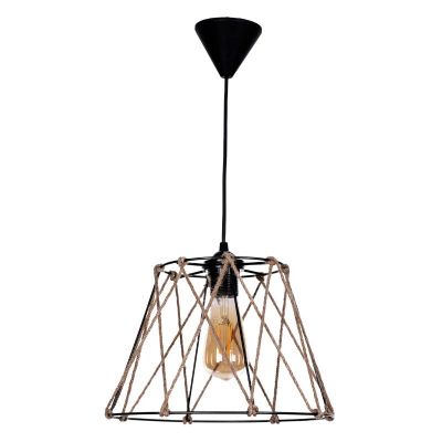 17. Φωτιστικό οροφής Andro Megapap E27 μεταλλικό - σχοινί μονόφωτο χρώμα μαύρο - φυσικό Ø30x70εκ.