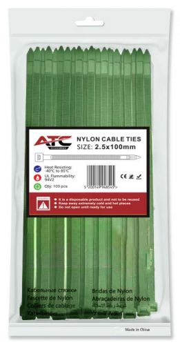 ATC Δεματικά 2.5x100mm Νάιλον Πράσινα 100τμχ Σακουλάκι