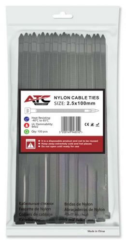 ATC Δεματικά 2.5x100mm Νάιλον Μαύρα 100τμχ Σακουλάκι