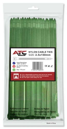 ATC Δεματικά 2.5x150mm Νάιλον Πράσινο 100τμχ Σακουλάκι