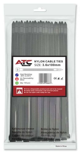 ATC Δεματικά 3.6x100mm Νάιλον Μαύρα 100τμχ Σακουλάκι