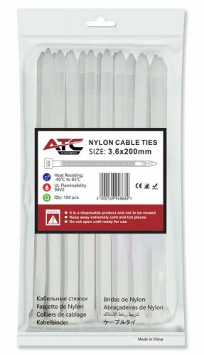 ATC Δεματικά 3.6x200mm Νάιλον Λευκά 100τμχ Σακουλάκι