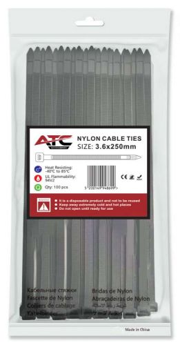 ATC Δεματικά 3.6x250mm Νάιλον Μαύρα 100τμχ Σακουλάκι
