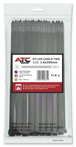 ATC Δεματικά 3.6x300mm Νάιλον Μαύρα 100τμχ Σακουλάκι