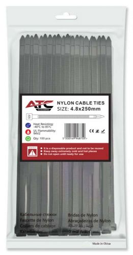 ATC Δεματικά 4.8x250mm Νάιλον Μαύρα 100τμχ Σακουλάκι