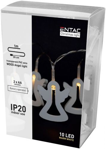 7. Entac Χριστουγεννιάτικα Εσωτερικά Ξύλινα Αγγελλάκια 10 LED Θερμό 1μ (2xAA Δεν περιλαμβ.)